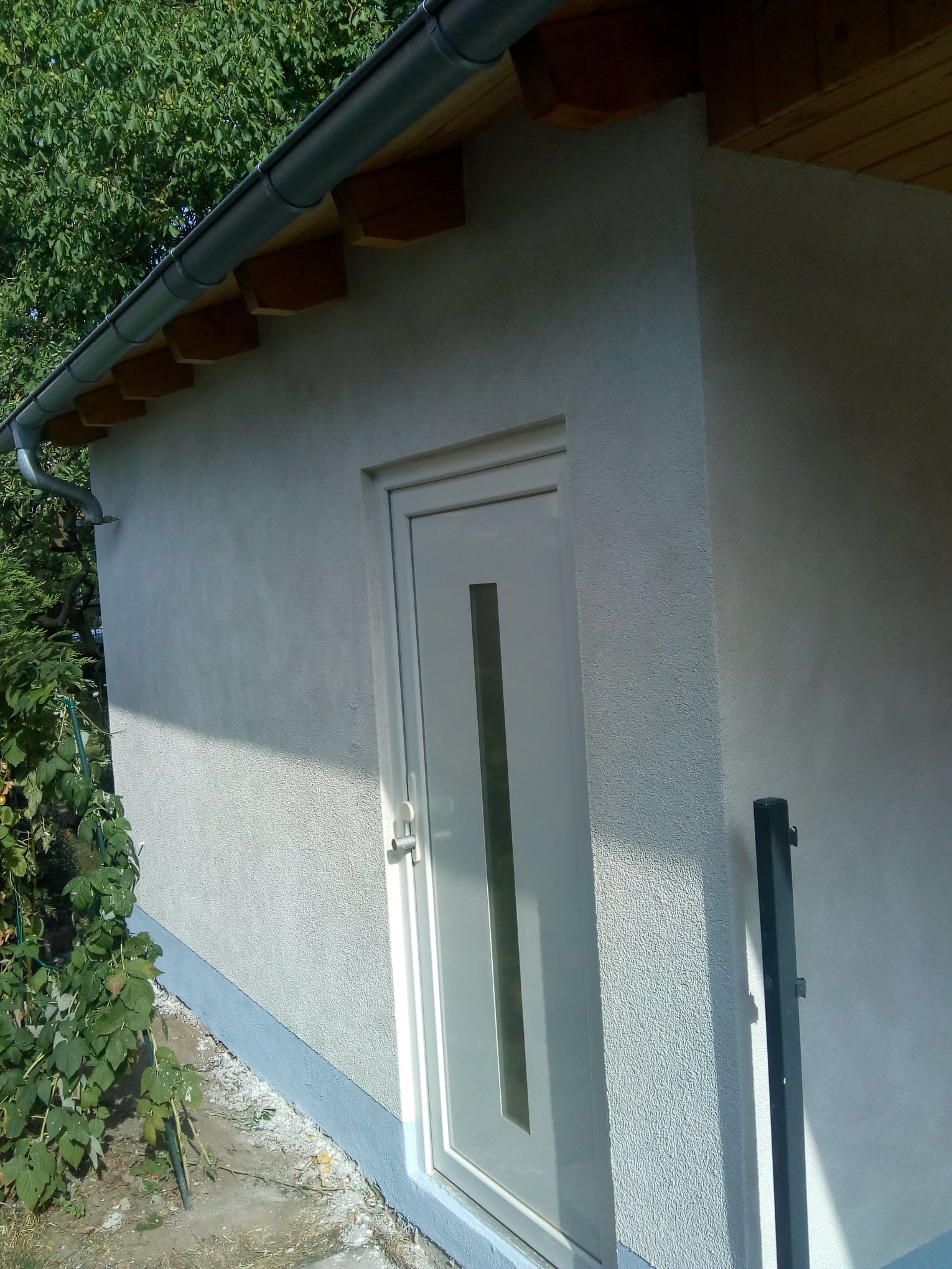 Omietnutie garáže + stiahnutie farby 🚗. Omietnutie novej garáže pomocou cementovo perlivej omietky, penetrácia a následne stiahnutie minerálnou fasádnou omietkou. Vyštukovanie a natretie soklovou farbou. Zároveň jedna z našich posledných prác v Nemecku. 🇩🇪
